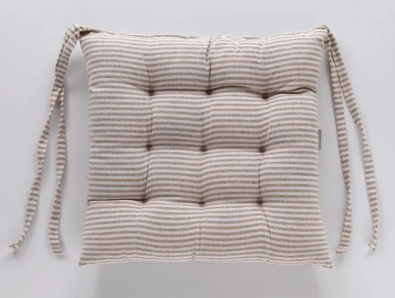 Futons, também conhecidos como assentos de cadeira, são práticas almofadas que vestem cadeiras e bancos e decoram copas, cozinhas e áreas de lazer além de trazer um conforto extra para a casa. Os futons Caiobá apostam no tecido de trama rústica, inspirado no clássico e elegante linho. O fechamento se faz por lacinhos e as peças podem ser higienizadas em máquina. O pesponto acentua o volume do futon e seu caráter decorativo. A cartela de cores brinca com lisos e listrados e provocam belas e inusitadas combinações.