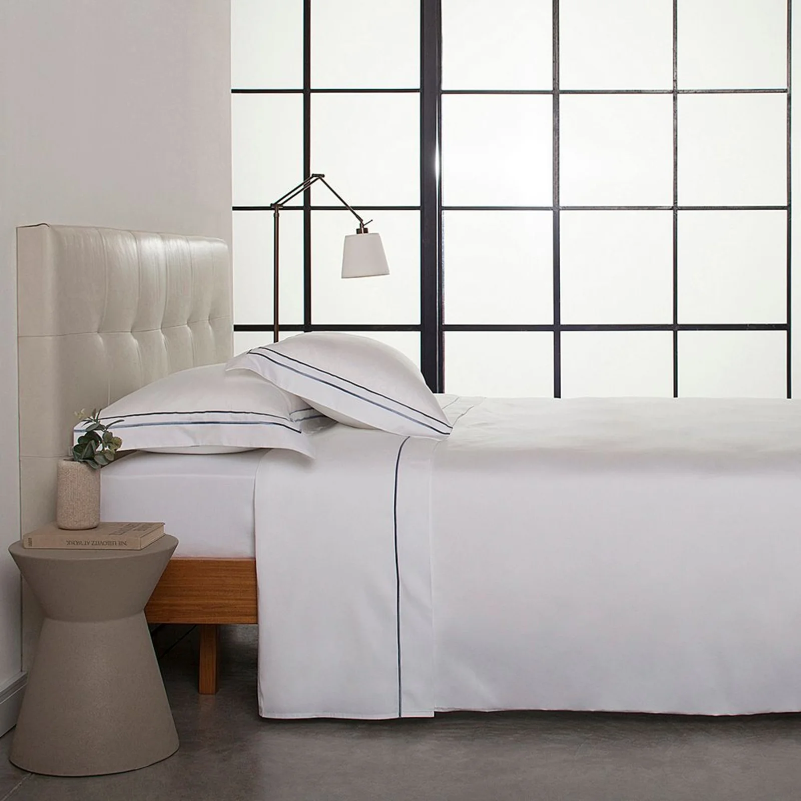 Jogo de lençol acetinado, em 300 fios de puro algodão com fibras longas e tecnologia de ponta. Recebe refinado acabamento em ponto cheio na moldura do sobrelençol e fronhas, criando uma combinação inigualável entre elementos da alta-costura com extremo conforto e maciez, para momentos relaxantes e repletos de bem-estar.