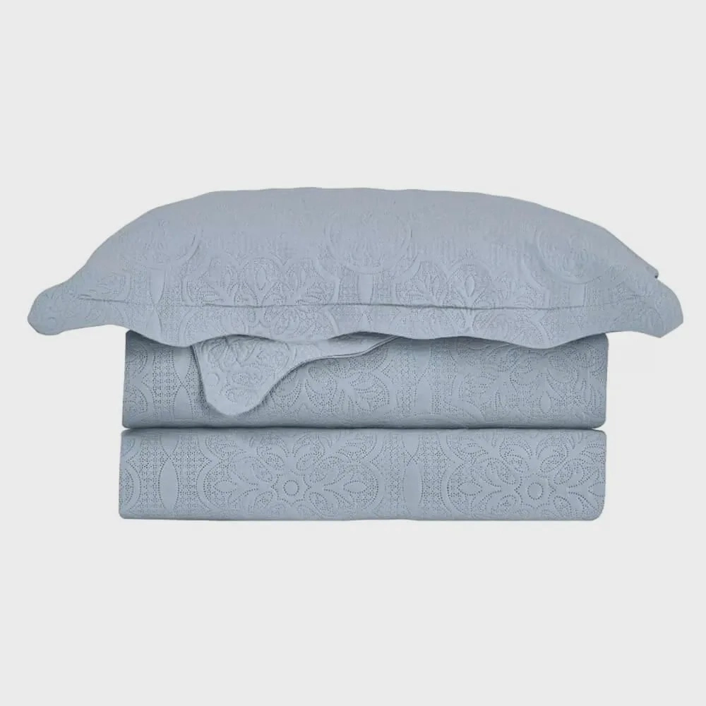 O conjunto de colcha para King, da coleção Marrocos, é produzido em microfibra 100% poliéster, possui dois porta travesseiros e uma colcha na cor Azul. O jogo de casal King é desenvolvido especialmente para aqueles que buscam proteger sua roupa de cama, com uma bela decoração e sensação de conforto. Com design matelassados em ultrassom minimalista com arabescos, esta colcha irá completar sua decoração e deixar seu quarto ainda mais bonito. Tenha a cama posta de seus sonhos com a colcha Marrocos!