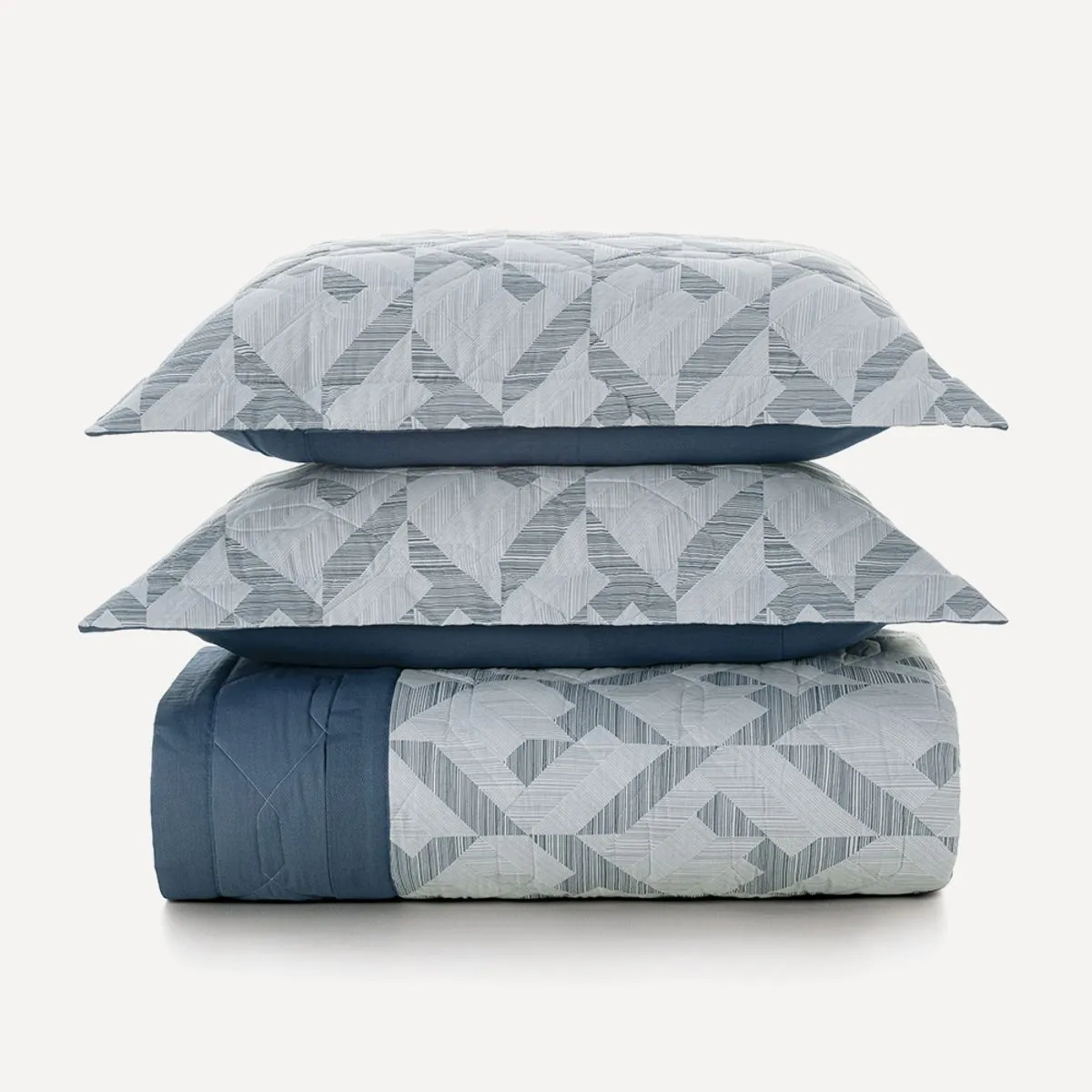 Estampa Martin Exclusiva: Apresenta um design geométrico e moderno, com padrões elegantes (geralmente em cores neutras e suaves), perfeito para renovar a decoração do quarto Queen com sofisticação e equilíbrio visual.