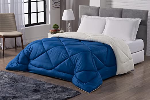 EDREDOM CAS D FACE LISO CANVAS QUEEN 240X240 AZUL