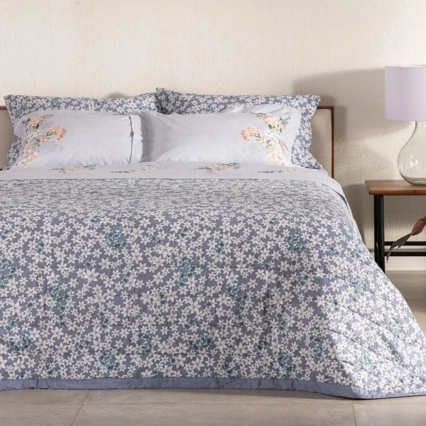 O sofisticado Jogo de Cama Buddemeyer Solteiro Percalle Lirium é a escolha perfeita para quem busca elegância e conforto no quarto. Com uma estampa rica em detalhes, o sofisticado lírio se destaca em meio a florais pequenos com toques de azul, garantindo um visual encantador. A colcha dupla face e os porta travesseiros com abas são sinônimos de qualidade e estilo. A textura contemporânea proporciona um ar moderno ao ambiente, enquanto os tons delicados criam uma atmosfera tranquila.