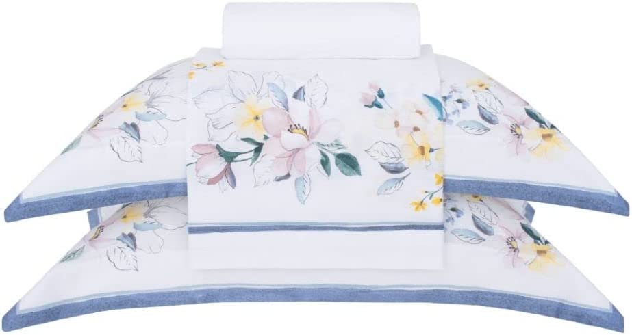 O composê de listras e florais em cores leves traz frescor e delicadeza à sua coleção de cama. O Jogo de Cama Buddemeyer Casal Vision Biarritz, que possui um toque acetinado e macio, é elaborado em tecido 100% algodão cetim com 300 fios de fio penteado, garantindo a melhor qualidade. O sobrelençol é adornado com estampa localizada, enquanto as fronhas possuem 3 abas que proporcionam um acabamento requintado. Inclui um lençol com elástico que se adapta a colchões com altura de até 35cm, ideal para compor um ambiente aconchegante e estiloso.