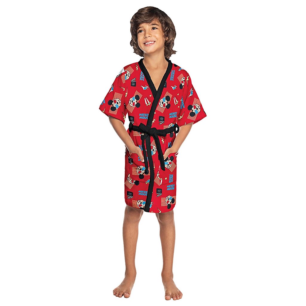 O Roupão de Banho Aveludado Coleção Disney, ótima absorção com bolsos frontais e tira de amarração.